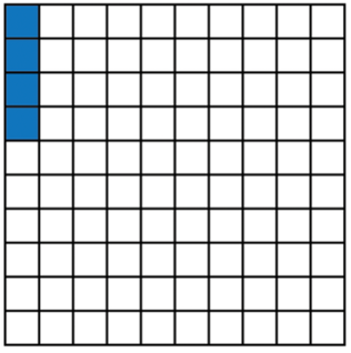 Four parts of this block of \(100\) squares, which is \(4 \times \frac{1}{100} = \frac{4}{100} = \text{0,04}\), may be