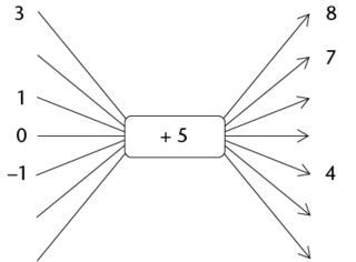 We call \(+5\) the \(operator\) (or \(function\)). It tells you what happens to the input number to get to the output number.