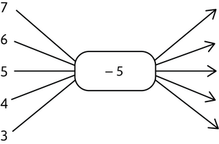 A relationship between two quantities can be shown using a flow diagram such as the one below. Each input number in a flow diagram has a corresponding output number. The first (top) input number corresponds to the first output number. The second input number corresponds to the second output number, and so on.
