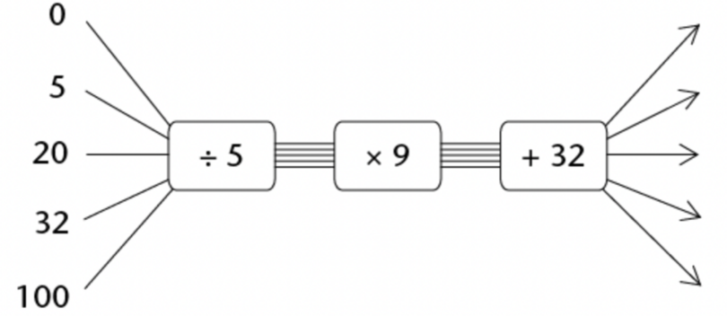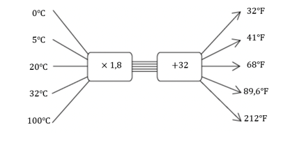 example, the rule for converting temperature given in degrees Celsius to degrees Fahrenheit is given as: