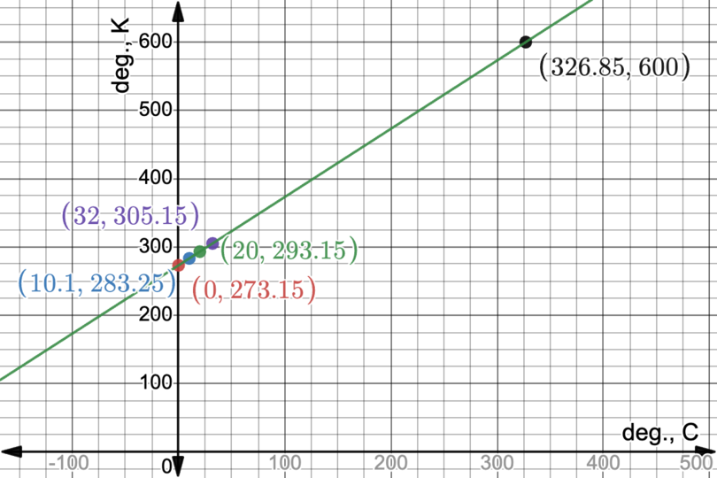 ^{\circ}\text{C} &= 600 - \text{273,15} \\
