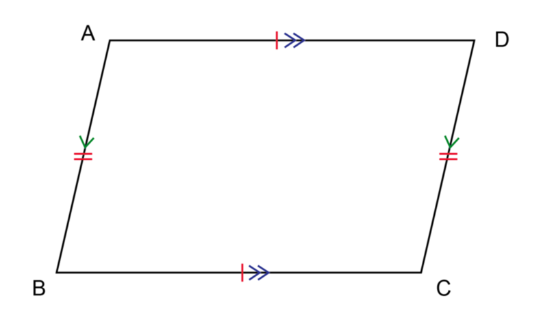 \[\text{Sum of angles of quadrilateral} = 2 \times 180^{\circ} = 360^{\circ}\]A parallelogram is a quadrilateral with both pairs of opposite sides equal and parallel.