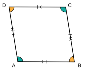 A parallelogram has four interior angles. A special property of the interior angles of parallelogram is that the interior opposite angles are equal. A parallelogram has two pairs of opposite angles that are equal.