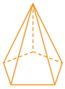 A pyramid can have any polygon as its base. The diagrams below show a square-based pyramid, a pentagon-based pyramid and a hexagon-based pyramid. Notice that these are examples of regular polygon bases.