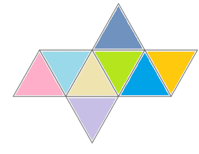 Construct a net for an octahedron with sides of \(5 \text{ cm}\). You can make all the faces different colours.