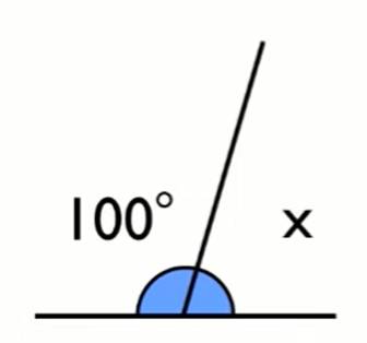 \(100^{\circ}+x=180^{\circ}\) (\(\angle\)s on a straight line)