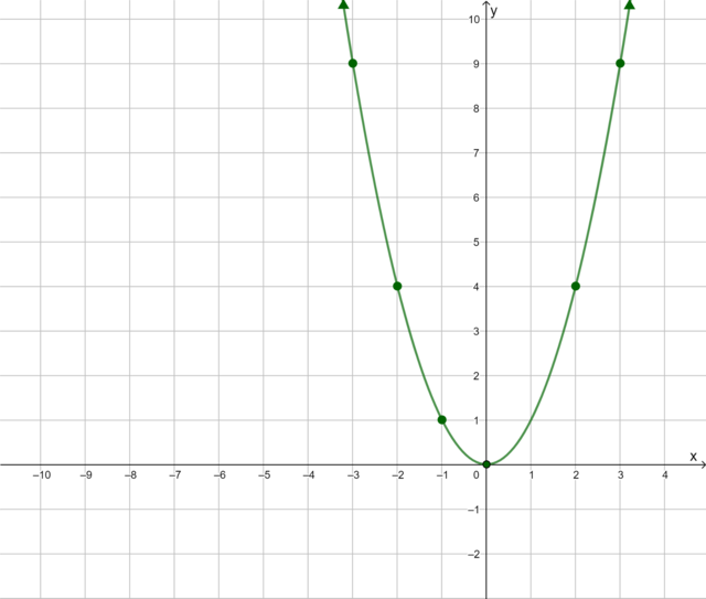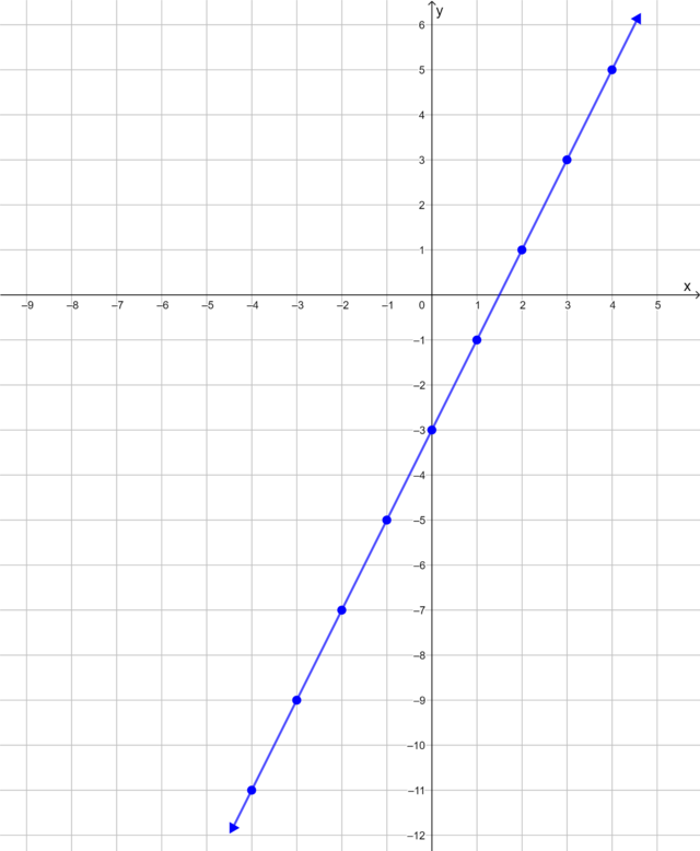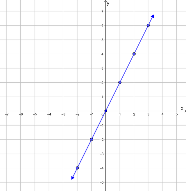 From the table of values, we obtain seven ordered pairs. We plot each point on the Cartesian plane and draw