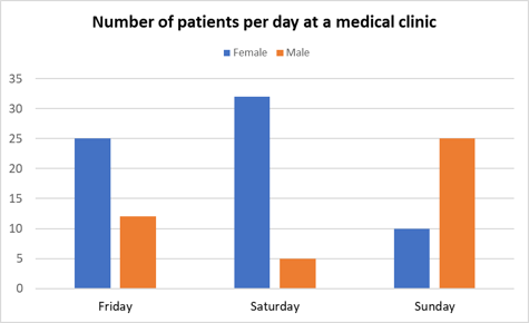 The table of values gives the number of patients per day at a medical clinic for three days. We will use these three days as the categories on the horizontal axis.