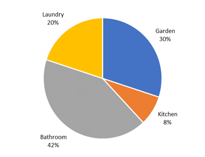 The percentages for the kitchen category + the bathroom category \(= 8\% + 42\% = 50\%\).