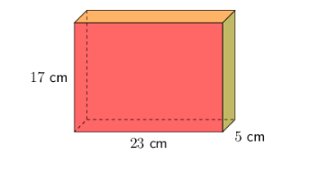 \[\begin{align} \text{Volume of prism} &= 23 \times 5 \times 17 \\ &= 1\ 955 \end{align}\]Write the final answer.