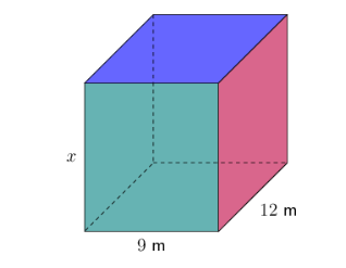 \[\begin{align} \text{Volume of prism} &= \text{area of base} \times \text{height} \\ &= (l \times b) \times h \end{align}\]Use the volume of the rectangular prism to find the value of \(x\).
