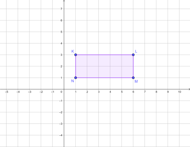 The diagram shows rectangle \(KLMN\) on the Cartesian plane.