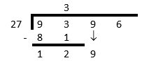 Ask the question: “How many times does \(27\) go into \(129\)?”