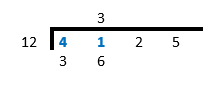 Ask the question: “How many times does \(12\) go into \(41\)?”