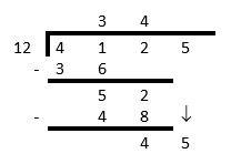Ask the question: “How many times does \(12\) go into \(45\)?”