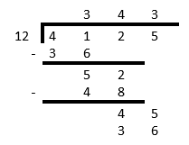 So, the answer is \(4\ 125 \div 12 = 343\) with a remainder of \(9\).