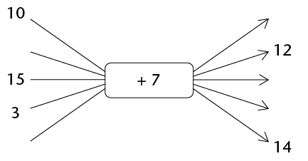To find the second input number you may say to yourself, "After I added 7, I had 12. What did I have before I added 7?"