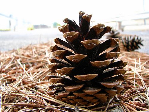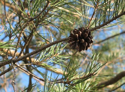 Describe how the seeds of angiosperms differ from those produced by the organism in the photo. [2 marks]