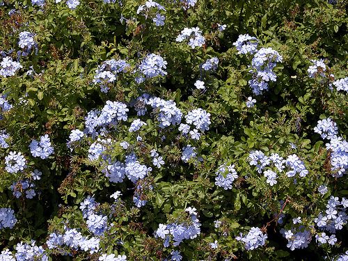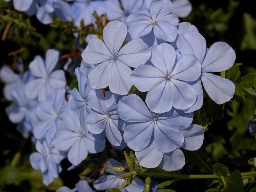 The geranium flowers have ten petals, the plumbago flowers have five petals, the hibiscus flower has five petals, the hydrangea flowers have four petals. We can say the dicotyledons have flowers with parts in multiples of four or five.