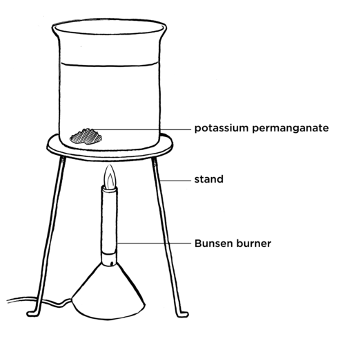 When the Bunsen burner is lit, what happens to the rod just above it?