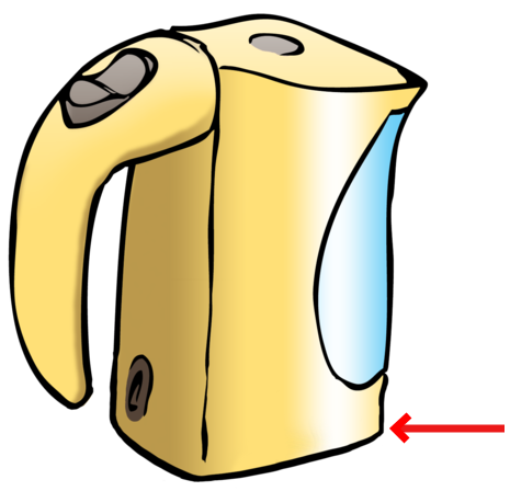 The heating element is at the bottom because as the element transfers energy to the water, the water expands and moves upwards and the colder water (slower moving particles) will sink to the bottom, forming a convection current This cycle will ensure that all the water is heated as quickly as possible. If the element was at the top, the water at the bottom would take much longer to boil.