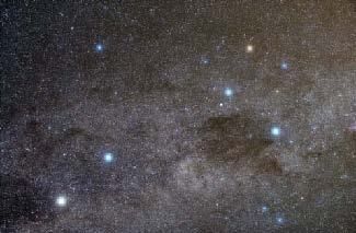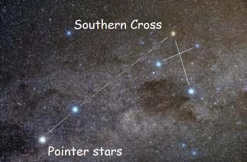 This pattern of stars is the Southern Cross.The white lines show you how to view the Southern Cross.