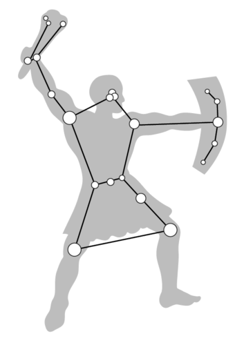 Another example is the constellation Orion. It is named after Orion, a supernaturally, strong hunter in Greek mythology. This is one of the most recognised constellations around the world and many cultures have identified with it, each forming their own myths, many around a strong man or hunter.