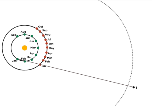 How can objects appear to move backwards when they are not really moving backwards? Let's do a test right now. Hold your arm outstretched in front of you and hold up your first finger. Cover or close your left eye and note where your finger appears against the background. Now cover or close your right eye instead. What do you notice about the position of where your finger appears? It moved to the right didn't it? But did you really move your finger? No, it just appeared to move because of your change in perspective.