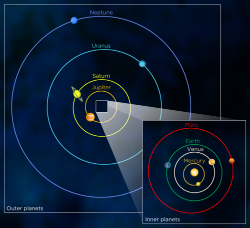 The Earth and the other planets in our solar system orbit around the Sun in an ellipse.