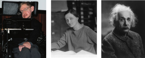 Stephen Hawking, Cecilia Payne-Gaposchkin, Albert Einstein.
