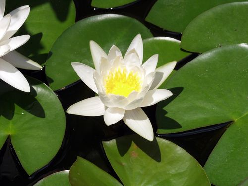 Long straight peduncle, which is underwater and less rigid than the sunflower so it can sway in the water; there is an inner layer of white petals, and the outer layer are actually white sepals, and not petals. |