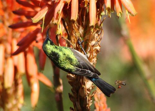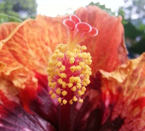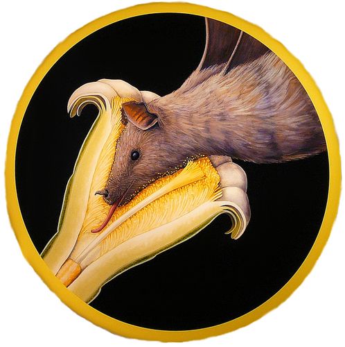 Some of the points that learners could note are: The flower is brightly coloured and probably gives off a sweet smelling smell to attract the bat. The flower has nectar for the bat to drink so that the bat comes to the flower. The flower is also probably open at night as the bat is nocturnal. The flower has a similar shape to the bat's head so that the bat can fit easily into the flower to reach the nectar. But the flower is still big enough with the nectar at the bottom so that the bat has to stick its whole head in and therefore brush against the pollen. The stamens are long and have feathery ends which brush against the bat as it sticks its head into the flower. This makes sure that pollen is brushed off onto the bat as it sticks its head in and the pollen can then be transferred to another flower when the bat visits that flower.