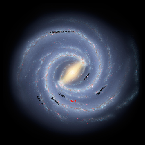 Scientists think that there are five major spiral arms in our galaxy. These are the Norma Arm, the Scutum-Crux Arm, the Sagittarius Arm, the Perseus Arm and the Cygnus Arm.