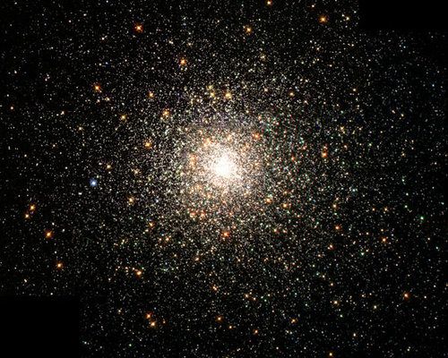 If you look closely at the image of the Milky Way above, you can see several round fuzzy blobs dotted about above and below the disk. These are called globular clusters and are vast collections of hundreds of thousands of ancient stars tightly packed together by gravity. The Milky Way has an estimated 160 globular clusters. The oldest stars in the galaxy are found in these globular clusters, some are almost as old as the Universe itself.