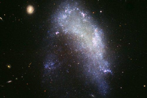 Irregular galaxy (it does not have spiral arms and is not a smooth oval shape like elliptical galaxies. It looks like an irregular shape) |