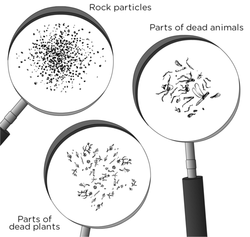 Learners should be able to identify the lack of dead animal carcases and manure, which indicates that the decomposers are working efficiently.