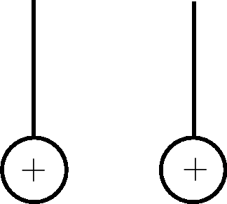 The spheres have the same, positive charge and like charges repel, so they move away from each other. |