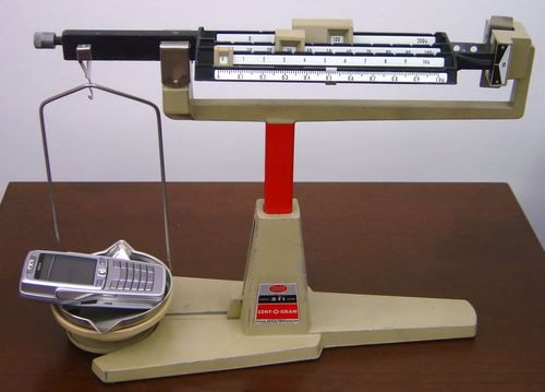 A triple beam balance.