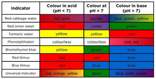Finally, we learnt that there are substances that we can use that will show whether we have an acid or a base. Can you remember what they were called? Hint: They indicate, or show, whether we have an acid or base.