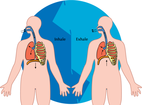When we inhale we take in air with a high concentration of oxygen and when we exhale we breathe out air that has more carbon dioxide in it. These processes take place in a continuous cycle.