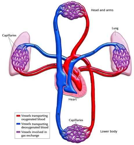 • Capillaries flow into veins that carry the deoxygenated blood to the right side of the heart.
