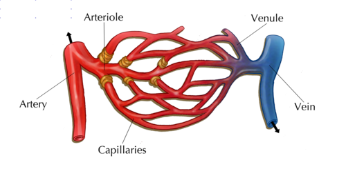 • Arteries divide into capillary networks between the cells, where oxygen and food diffuse from blood to cells.