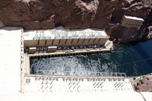 As the water flows down the outlet from the dam, describe the transfer of energy.