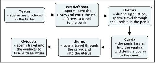 The male body has to produce sperm and deliver this sperm to the female body in order for it to come into contact with the female egg (ovum).