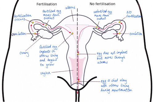 The processes that occur will differ depending on whether the ovum is fertilised or not. After ovulation, if fertilisation does not occur, the reproductive organs 'reset' through menstruation to start the process again.
