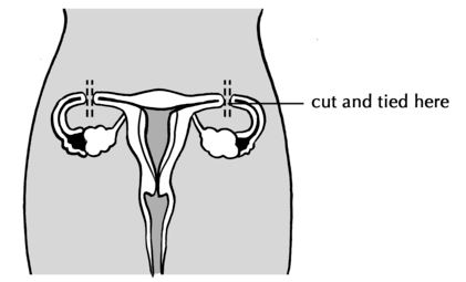 A surgical procedure in women in which the the oviducts are cut and tied which prevents mature eggs from reaching the uterus for fertilisation. |