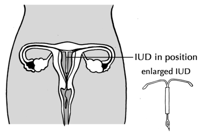 A small 'T'-shaped device is inserted into the uterus and prevent fertilisation. It is a long-acting, reversible contraception as the device may be removed again. It is not suitable for women who have not yet had a baby and must be inserted by a doctor. |