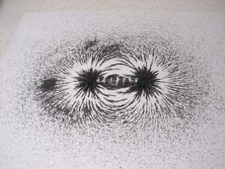 As the investigation shows, one can map the magnetic field of a magnet by placing it underneath a piece of paper and sprinkling iron filings on top. The iron filings line themselves up parallel to the magnetic field.