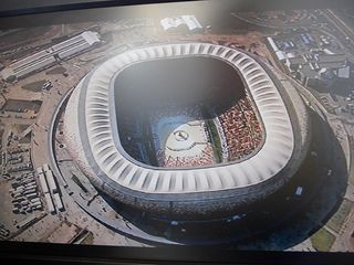 The nucleus of an atom is very small. We can compare an atom with a soccer stadium. If the whole atom is as big as a soccer stadium, the nucleus is only the size of a pea in the middle of the stadium! This should help you see that the atom is mainly made up of empty space. If you removed all the empty space from the atoms in your body, you would become the size of a grain of salt!