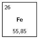 Do not confuse the notation we have used here with the way this information appears on the periodic table. On the periodic table, the atomic number usually appears in the top left-hand corner of the block or immediately above the element's symbol. The number below the element's symbol is its relative atomic mass. This is not exactly the same as the atomic mass number. This will be explained in "Isotopes". The example of iron is shown below.